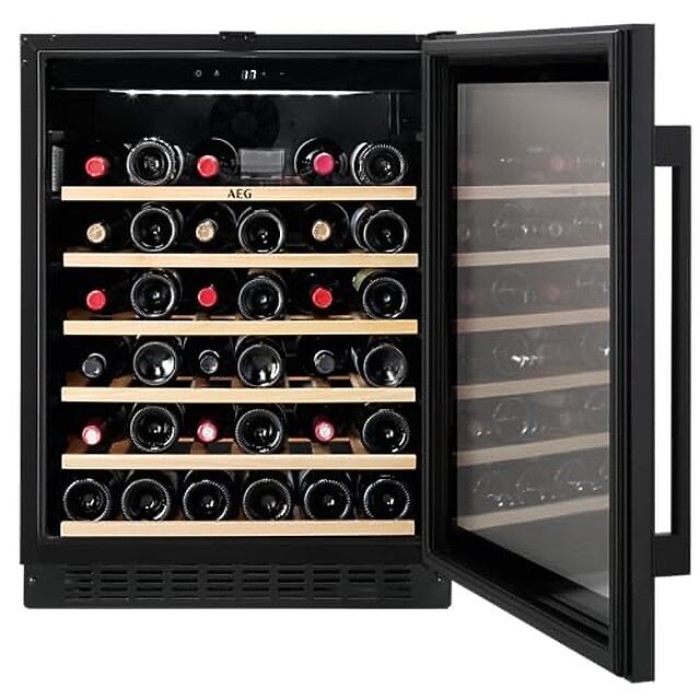 Six extendable wooden shelves mounted on telescopic runners provide easy access to every bottle. Top LED illumination offers clear visibility across your collection without affecting storage conditions. The reversible door adapts to any kitchen layout.