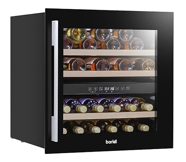The Dellonda Baridi 60cm Wine Cooler transforms any standard kitchen cabinet into a professional wine storage solution. This built-in unit holds up to 36 bottles across two independently controlled temperature zones.